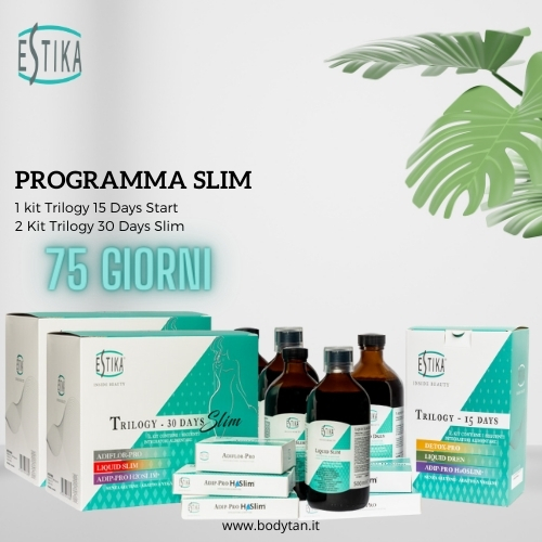 Stai acquistando il Protocollo Slim per 75 giorni, il programma comprende 2 Kit Trilogy 30 Days Slim e 1 Kit Trilogy 15 Days Start
